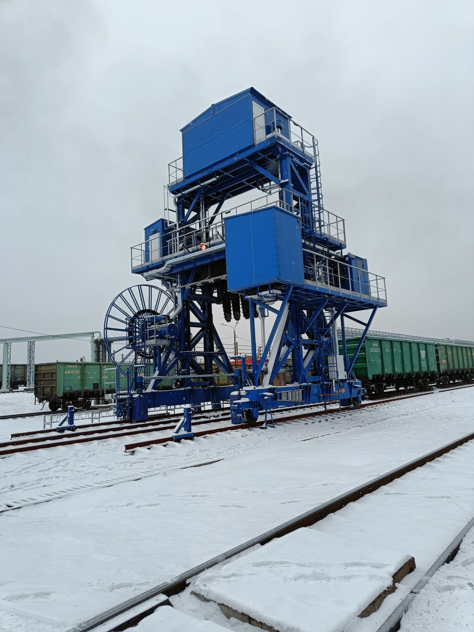Полувагон со смерзшимся углём до и после обработки рыхлительным комплексом